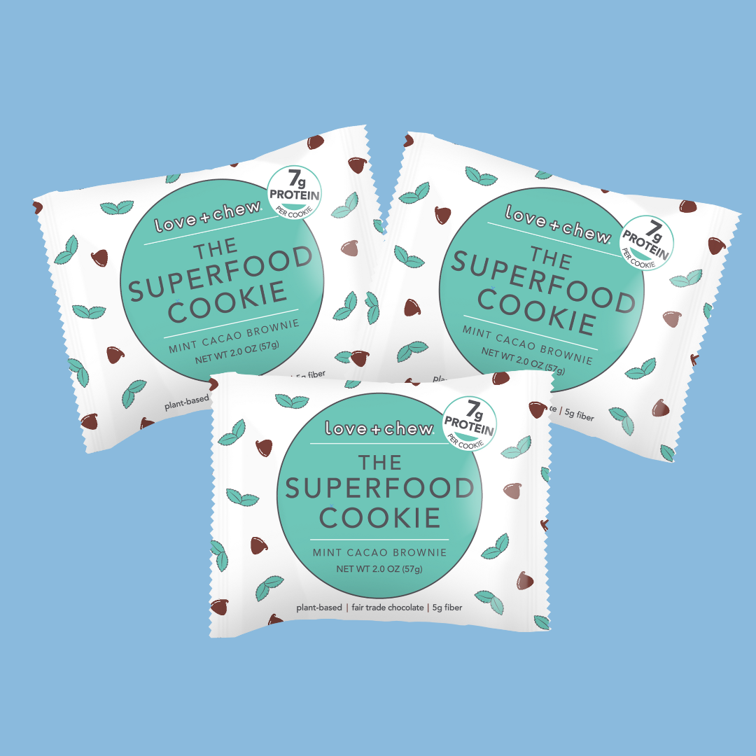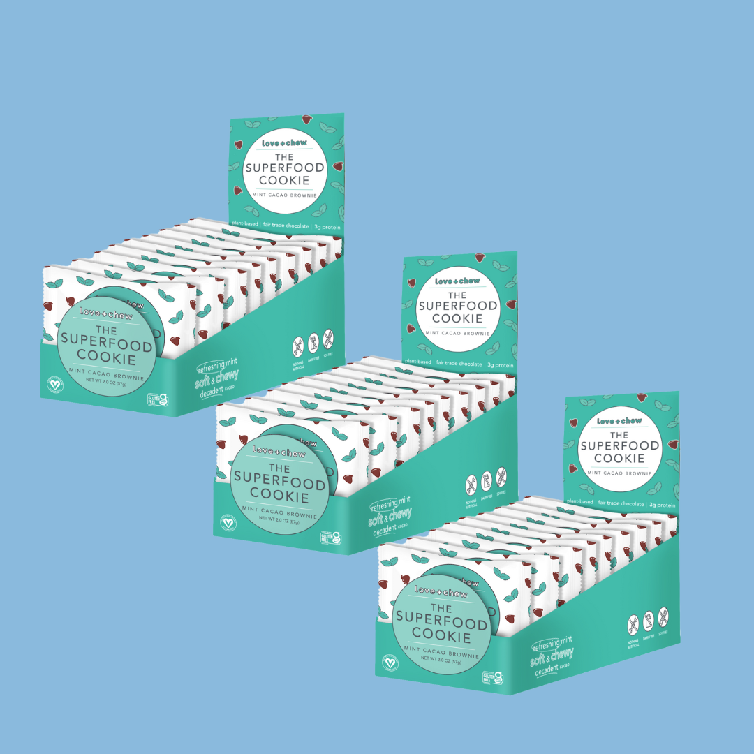Try our Retail Case that consists of 36 Mint Cacao Brownie cookies. Our cookies are vegan, gluten-free, and non-GMO.